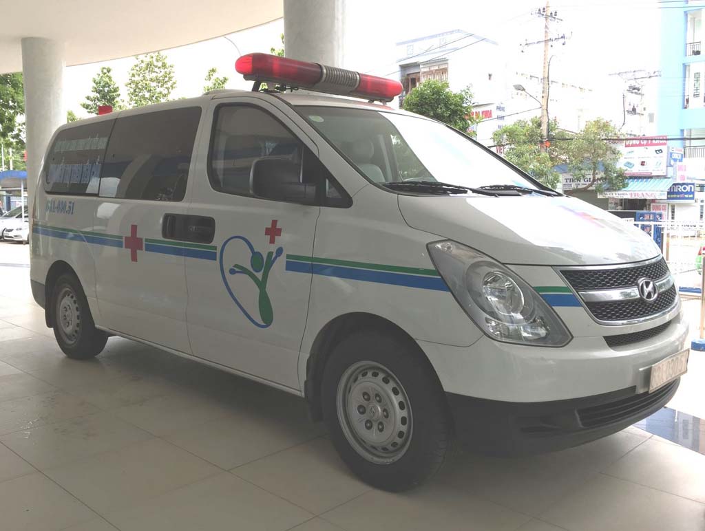 Xe cấp cứu chuyên dụng đời mới với đầy đủ trang thiết bị, máy móc được sử dụng trong việc chuyển bệnh nhân.